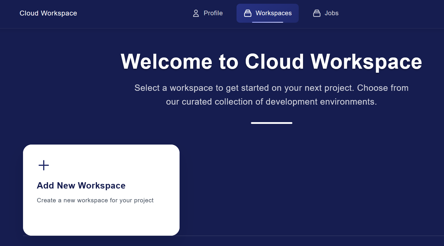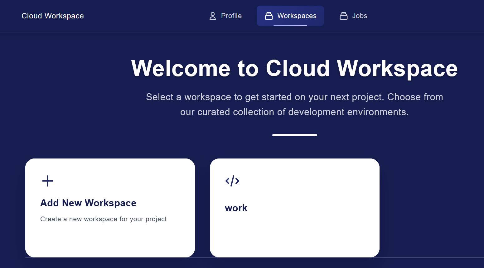 After creation workspace will be shown on home page