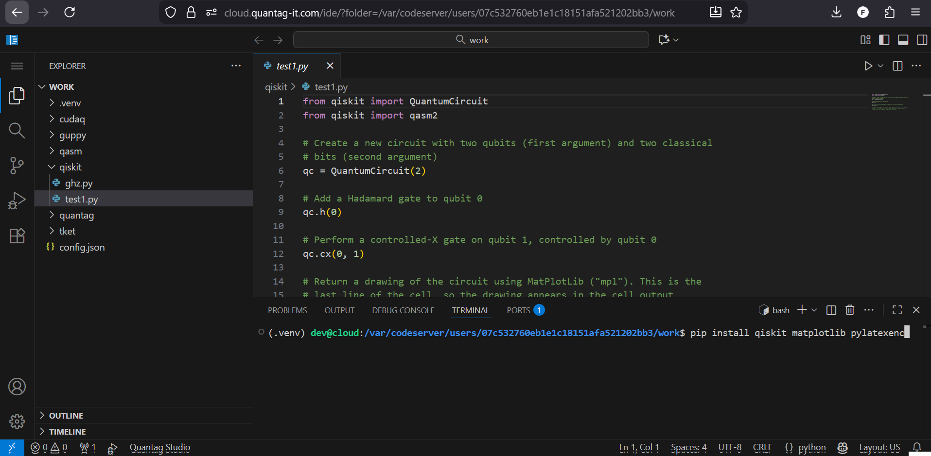 Now you can install required packages. For example recommended minial set is “pip install qiskit matplotlib pylatexenc”