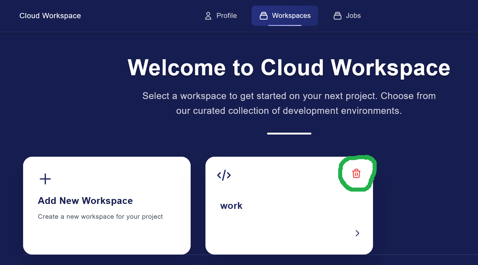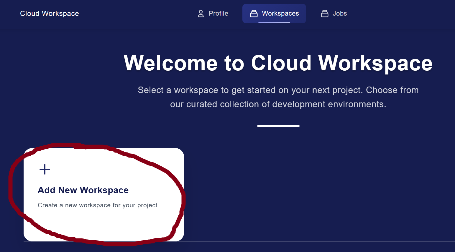 Create new workplace by pressing “Add New Workspace”