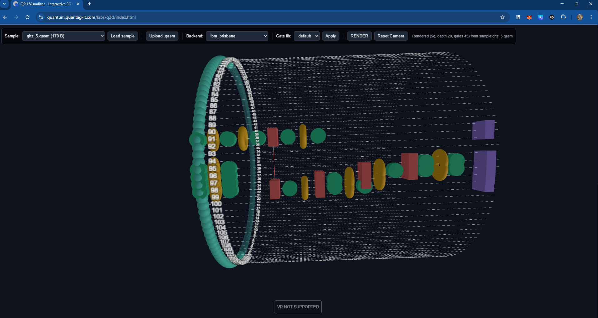 You can visualize OpenQASM quantim circuit in 3D also with VR support here: https://quantum.quantag-it.com/labs/q3d/index.html