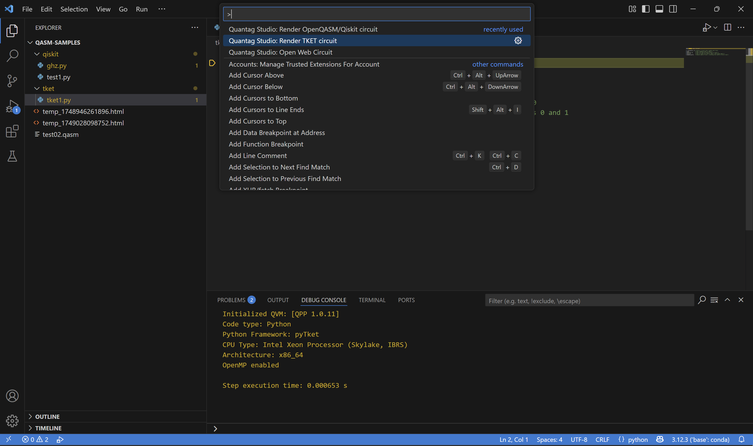 To render TKET circuit choose “Quantag Studio: Render TKET circuit”